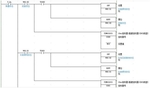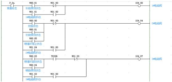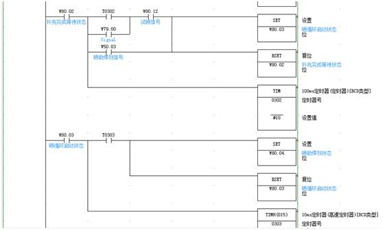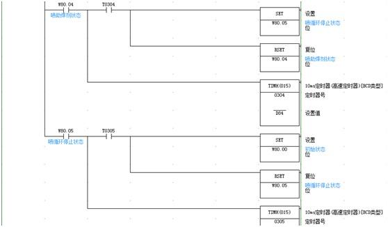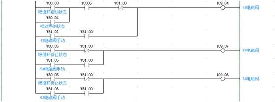 下面我們用歐姆龍的CP1H來實現上述液體控制的方法,順控程序如圖2、圖3、圖4所示,輸出信號如圖5、圖6所示。[2]