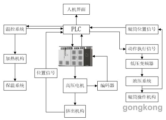 5.1、該擠出機采用PLC和人機界面來組成的整個控制系統,大大提高了擠出機生產穩(wěn)定可靠性,不易受干擾,故障率低;
