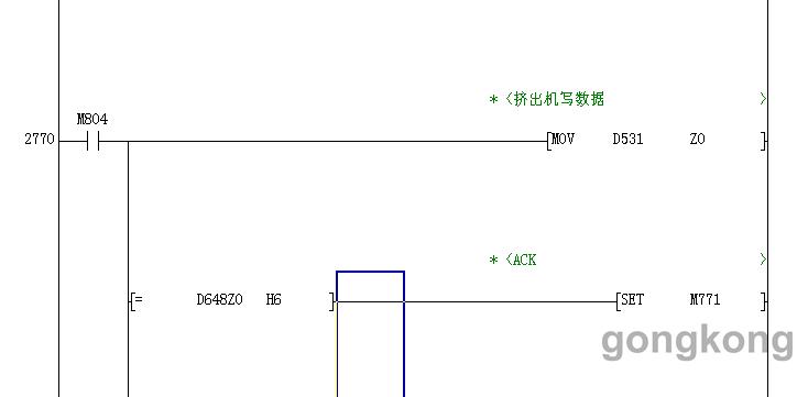 PLC、人機界面和變頻器都正常工作后,編制PLC程序進行系統聯調,PLC系統通過GX-Developer軟件在計算機上進行編程,圖4是程序設計部分梯形圖略: