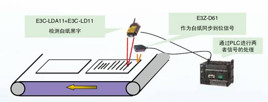 如工藝流程圖所示,在檢測環(huán)節(jié)中的白紙檢測主要用于檢測說明書中是否有夾雜白紙的功能,由于藥品說明書上的字一般都印刷得比較小,有時(shí)行與行之間的間隙較大,因此很難用一般光纖傳感器進(jìn)行檢測,OMRON的E3C系列激光傳感器中有線型光源,能靈敏地檢測到說明書上每行細(xì)小的字體,經(jīng)過實(shí)踐證明能很好地幫助客戶實(shí)現(xiàn)白紙檢測功能。