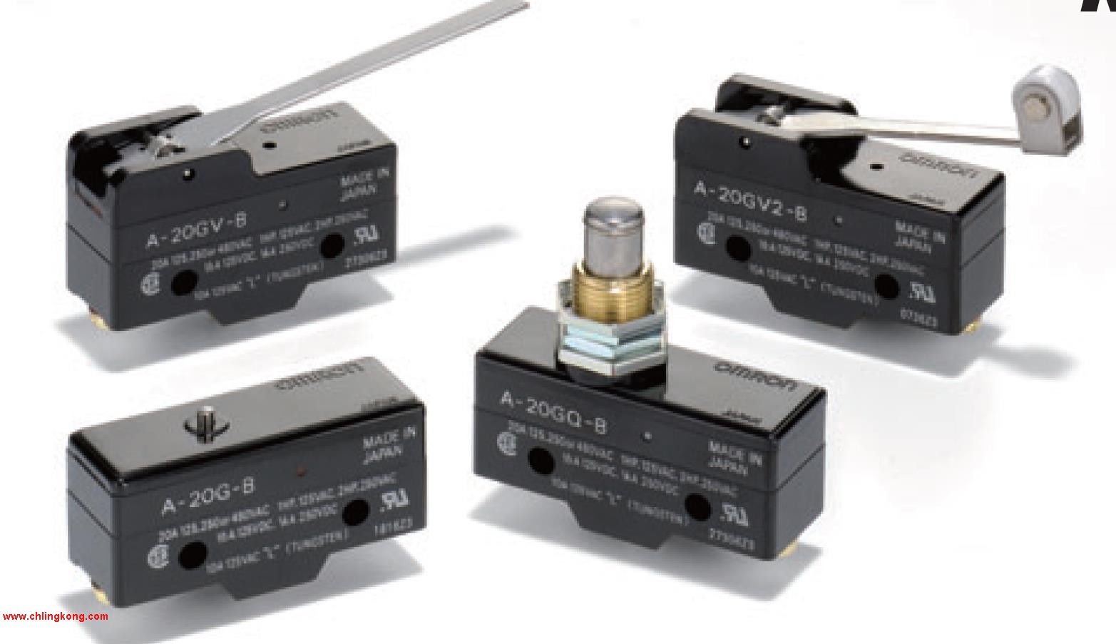 接點(diǎn)類(lèi)型:微小負(fù)載 (AC125V, 0.1 A, DC30V, 0.1 A)歐姆龍A-20GV2-B。