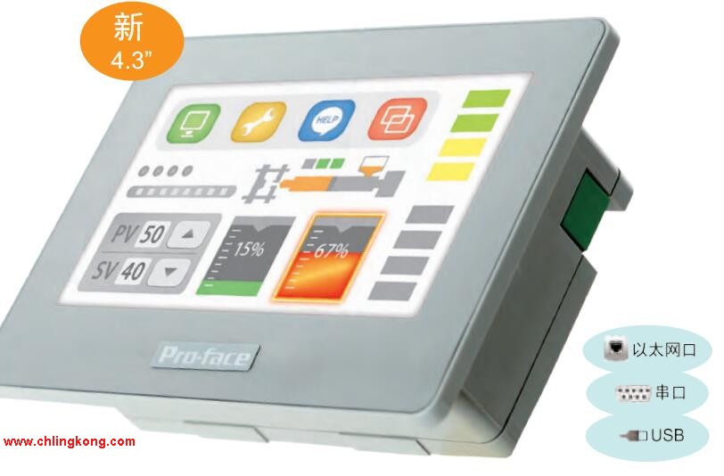 顯示顏色:單色(16級灰度)Proface單色機型觸摸屏。