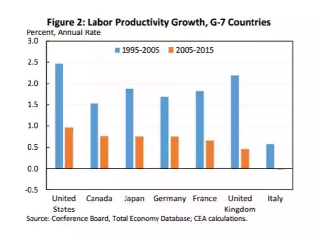 技術一直是生產率增長的主要動力之一。事實上,技術的變化也能解釋自上世紀九十年代以來生產率的增長。還有些證據(jù)表明,在 1993 年到 2007 年之間的 17 個國家,僅工業(yè)機器人自動化就將勞動力生產率提升了 0.36 個百分點。