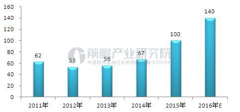 根據《2017-2022年中國伺服電機行業市場前瞻與投資戰略規劃分析報告》數據顯示,2011年我國伺服電機市場規模為62億元;2012年由于OEM行業受挫嚴重,伺服市場發展出現負增長,直到2013年下半年,伺服市場才開始逐步回暖,上升幅度在5%左右。2015-2016年間,我國伺服電機行業發展較快,其中2015年我國伺服電機行業市場規模突破100億元,2016年,我國伺服電機行業市場規模有望達到140億元。
