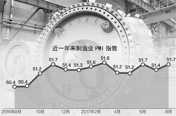 31日,國家統計局服務業調查中心與中國物流與采購聯合會發布的8月份中國制造業采購經理指數(PMI)為51.7%,為年內次高點,比上月上升0.3個百分點。