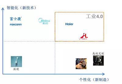 當(dāng)企業(yè)同時(shí)需要很高的智能化和個(gè)性化水平時(shí),工業(yè)4.0是首選。以海爾為例,在最新的網(wǎng)絡(luò)化戰(zhàn)略轉(zhuǎn)型中,海爾同時(shí)在信息化和自動(dòng)化上進(jìn)行升級(jí)改造:底層用戶數(shù)據(jù)互聯(lián)互通,圍繞用戶組織全流程,同時(shí)打造更加定制化的家電品類,建設(shè)互聯(lián)工廠,以小批量柔性化的生產(chǎn)方式應(yīng)對(duì)更加個(gè)性化的訂單。