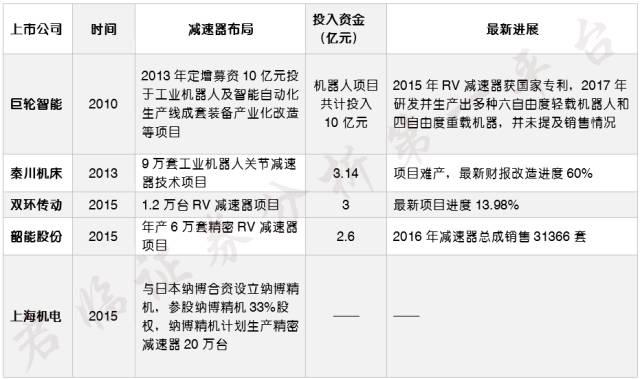 近來,一些本土企業已經向這個領域艱難進發,以下是部分上市公司在減速器方面的布局: