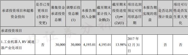 在2016年的年報中,9萬套工業機器人關節減速器改造項目完成進度,僅有60%。